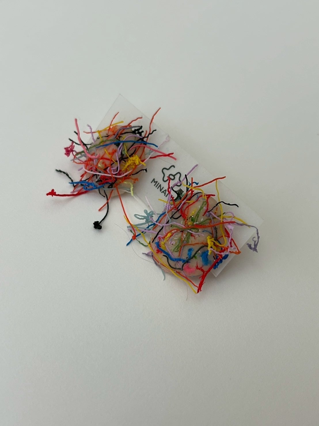 模様のモジャモジャも糸ではなくポリマークレイで作っております。