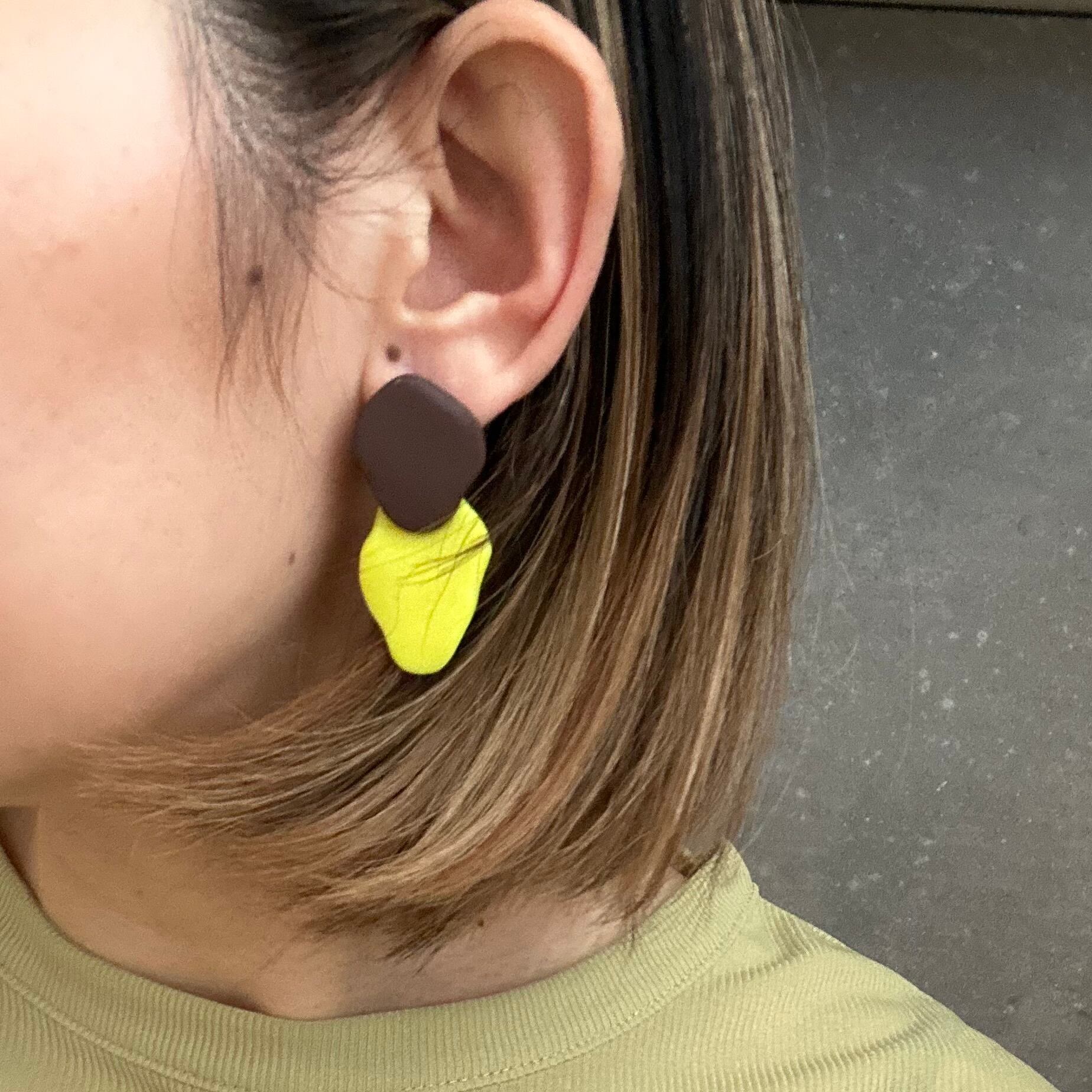 【ウロコ】ピアス 茶×ネオンイエロー