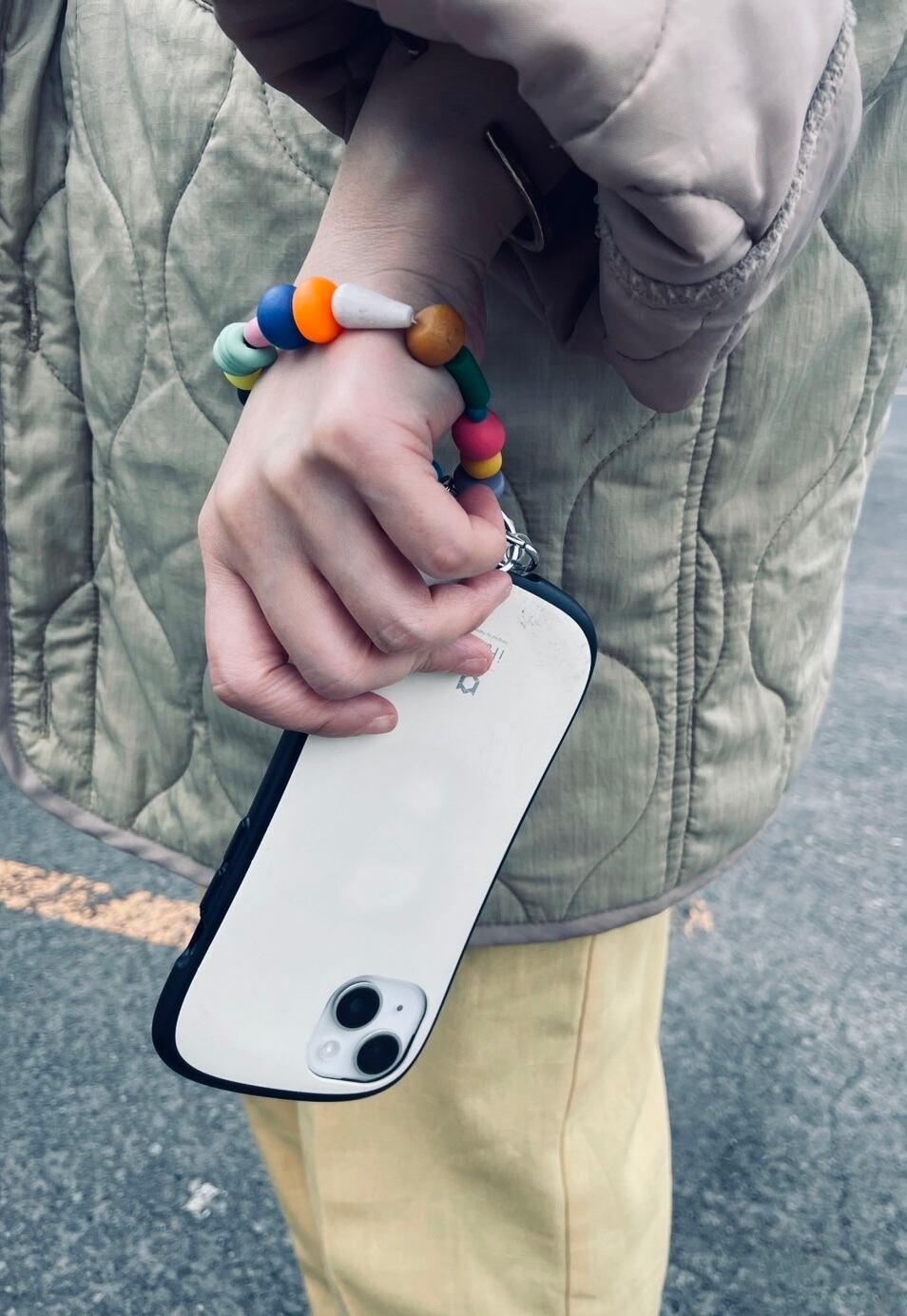携帯ケースに取り付けて手首に巻いたり、スマホショルダーに付けてアクセントにしてみたり、キーチェーンとして使ったり、シンプルなカバンに付けてみたり、カメラに付けてみたり…