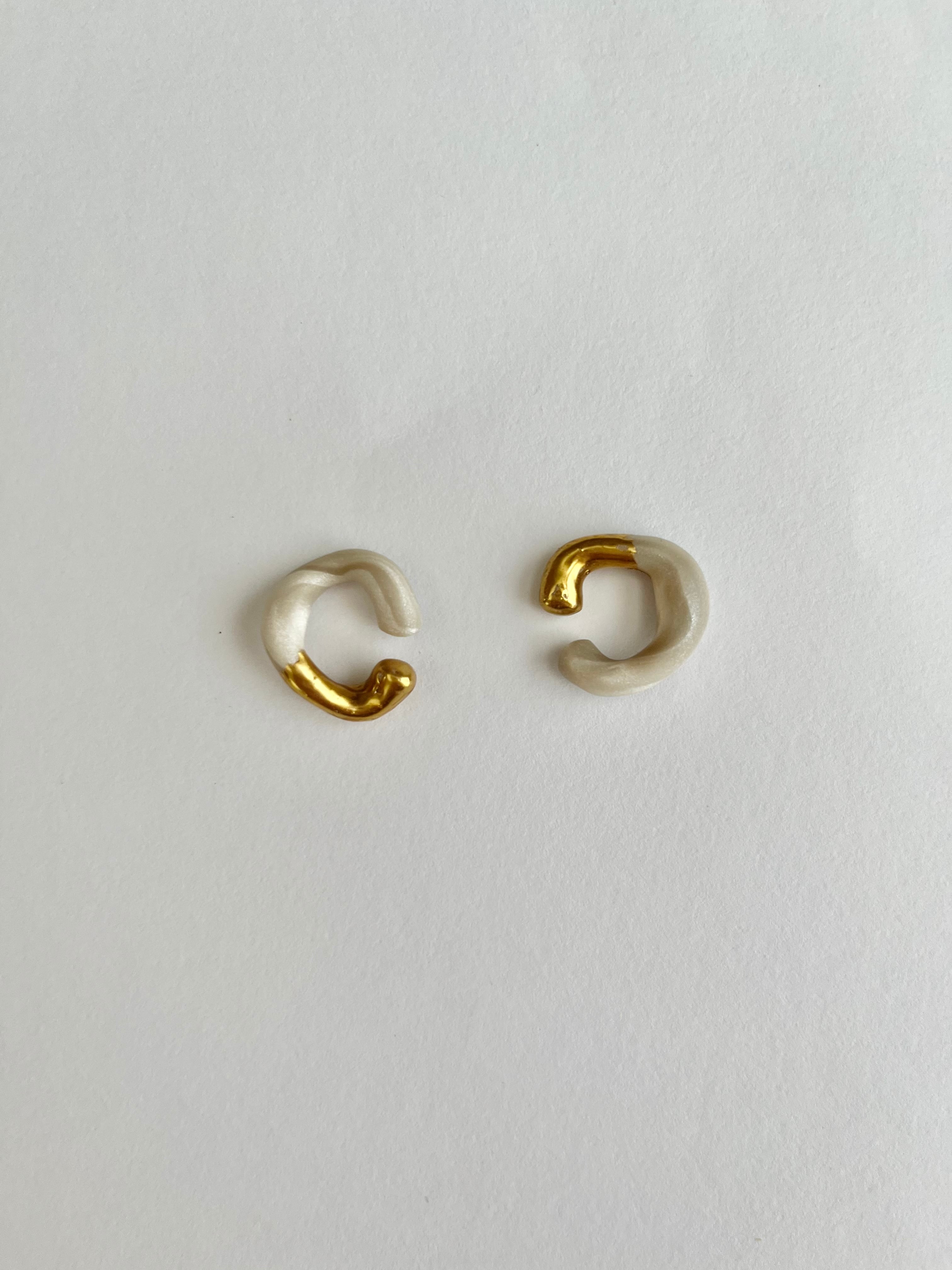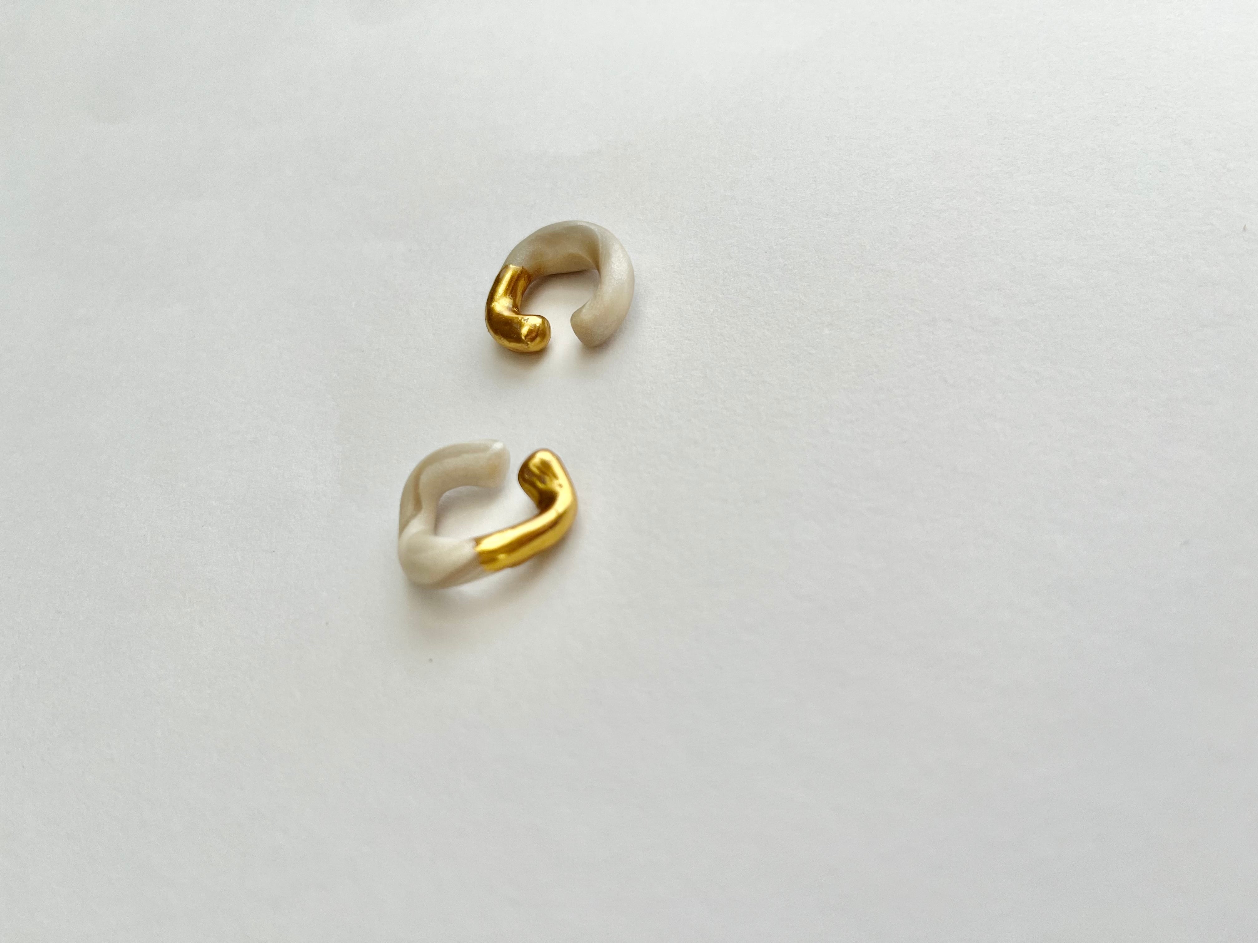 破損防止のため装着時はイヤーカフを広げようとせず、垂直に耳たぶに通していただくことをおすすめします。